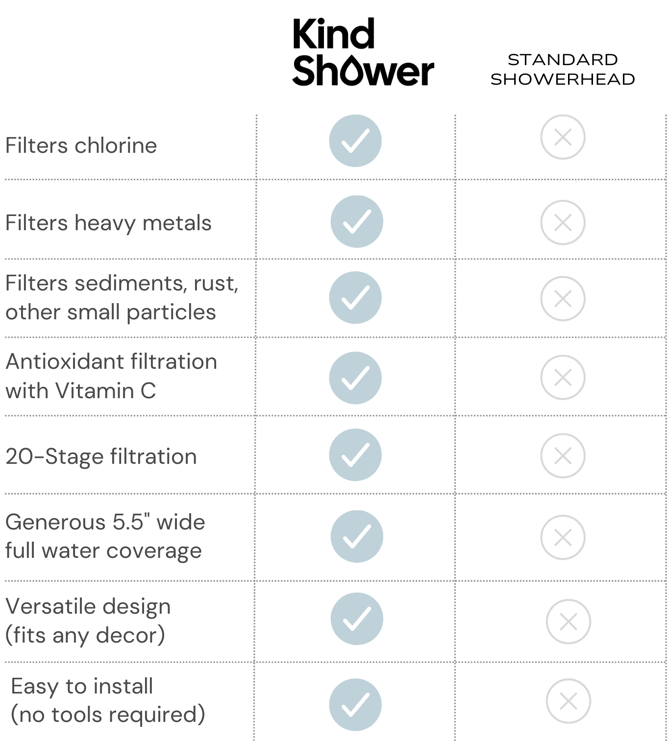 Water treatment focuses on safety but neglect the delicate needs of our skin and hair. We expose our bodies to chlorine, heavy metals, minerals and treatment byproducts with every shower we take.